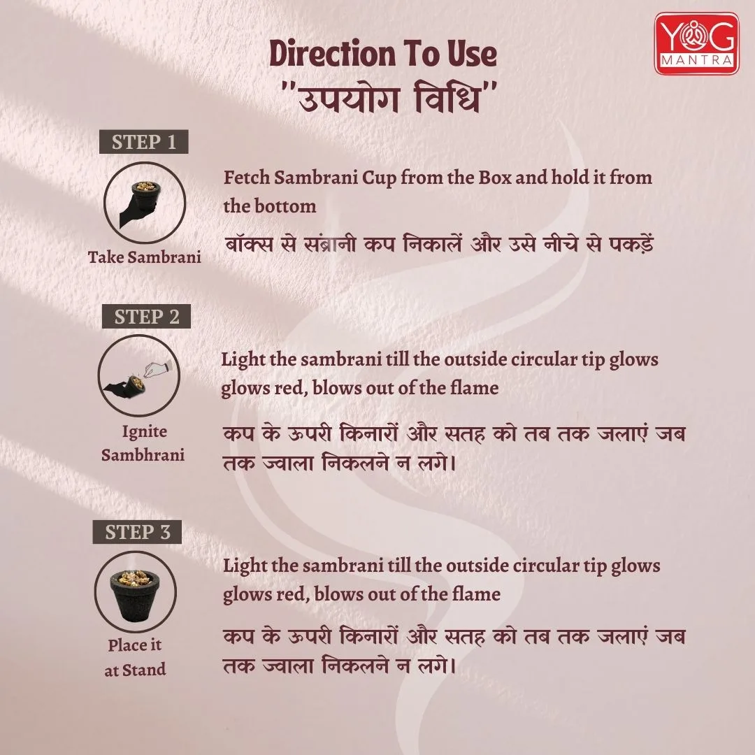 • YogMantra Kaushali Sambrani Cups work by releasing a divine and purifying smoke when ignited.