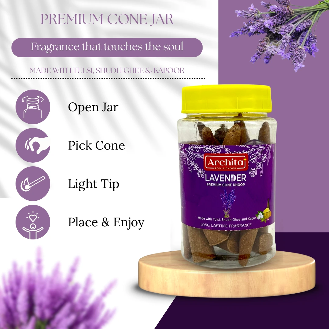 Archita Poojabatti Lavender Premium Dhoop Cone Jar – 100 gm