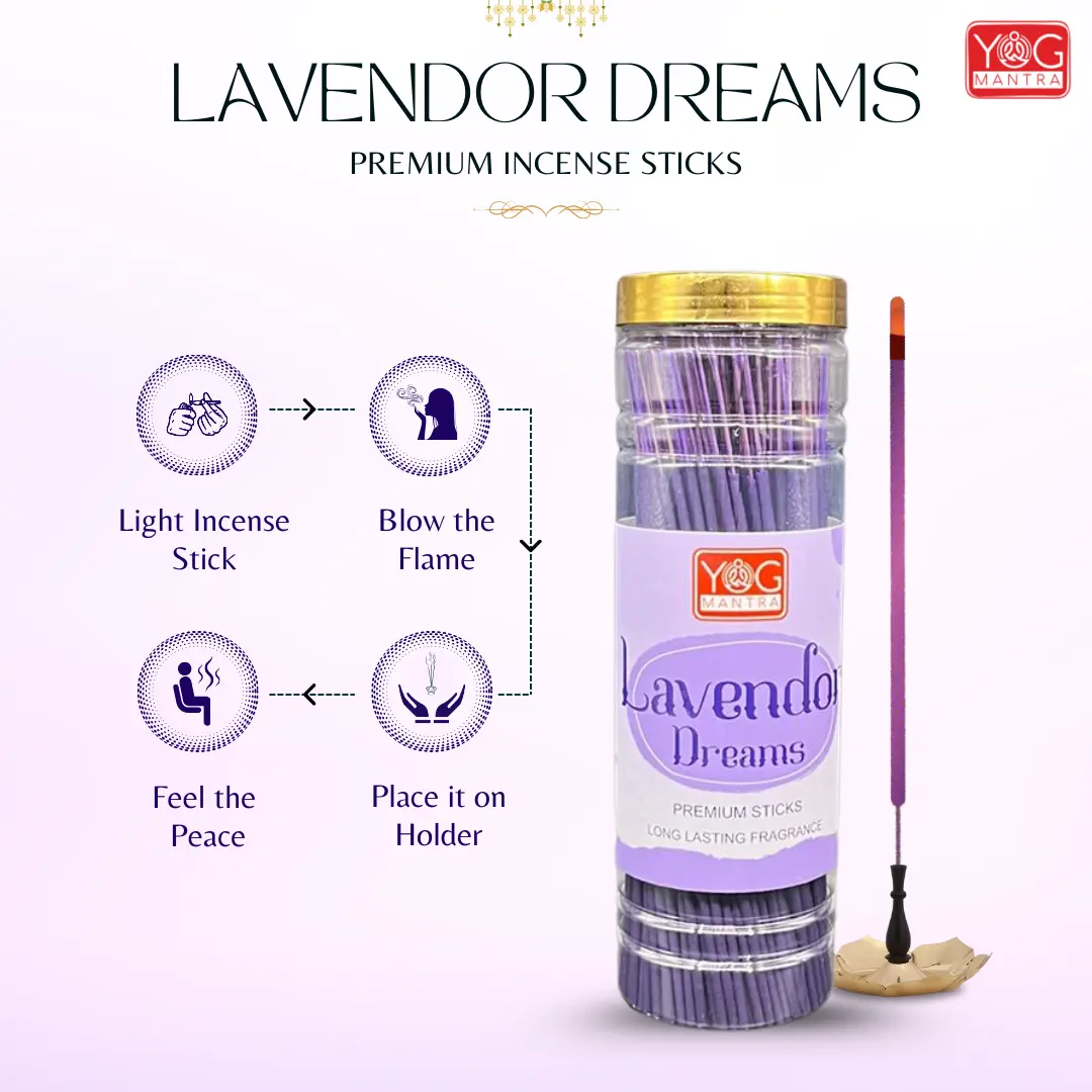 • YogMantra Lavender Dreams Incense Sticks work by releasing the delightful fragrance of fresh lavender when ignited.