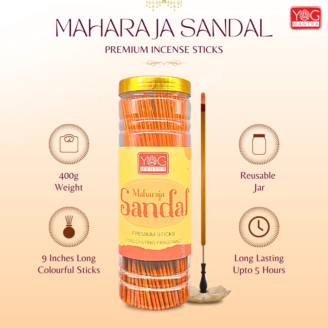 • YogMantra Maharaja Sandal Incense Sticks offer a luxurious and soothing experience, perfect for those seeking a touch of royalty in their surroundings.