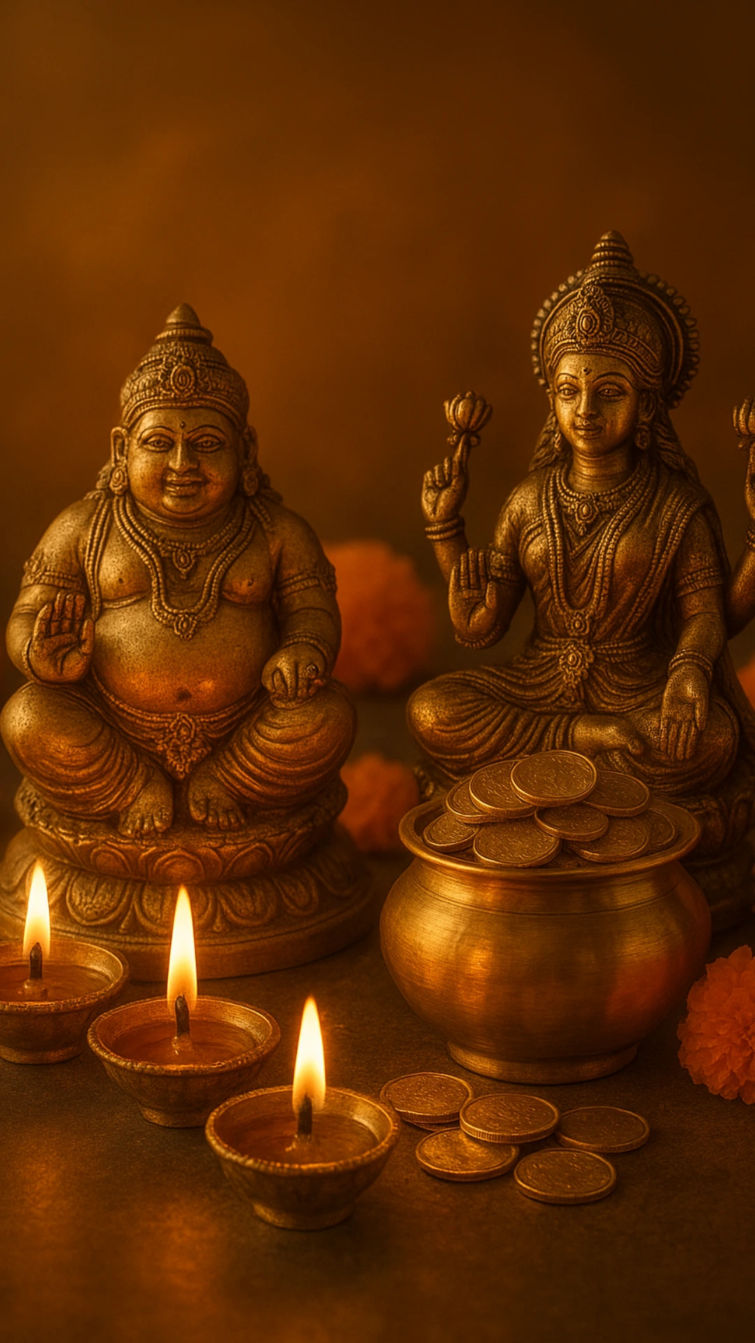 Start by cleaning your home, lighting diyas, and making rangoli at the entrance to welcome divine energy and abundance.