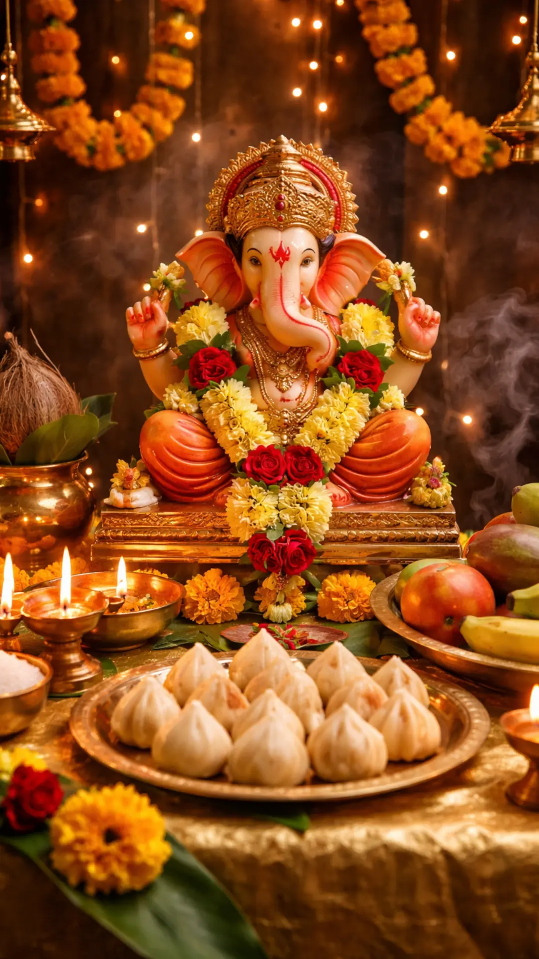 While singing Ganesh mantras, devotees observe a fast and eat fruits and satvik cuisine.