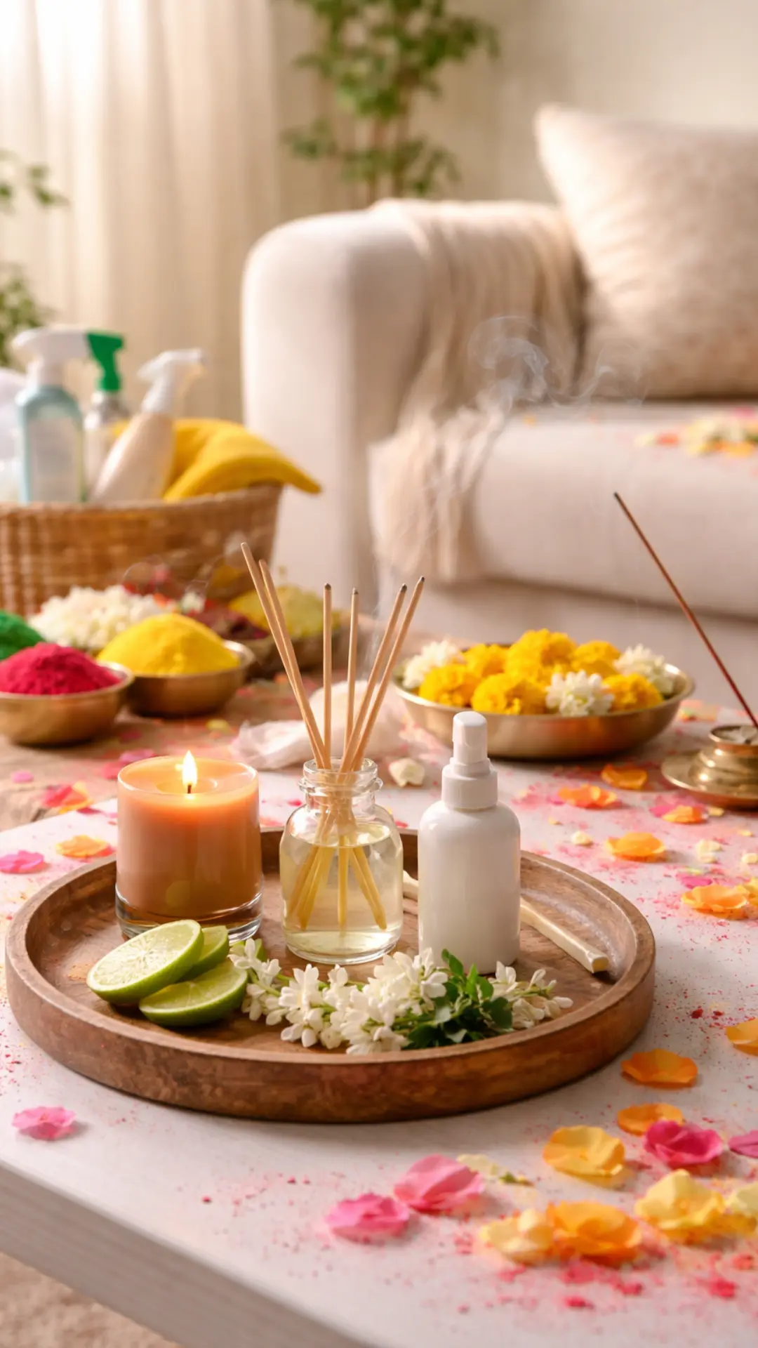 Lighting a diya at dusk softly returns the home to serenity and anchors positive vibrations.