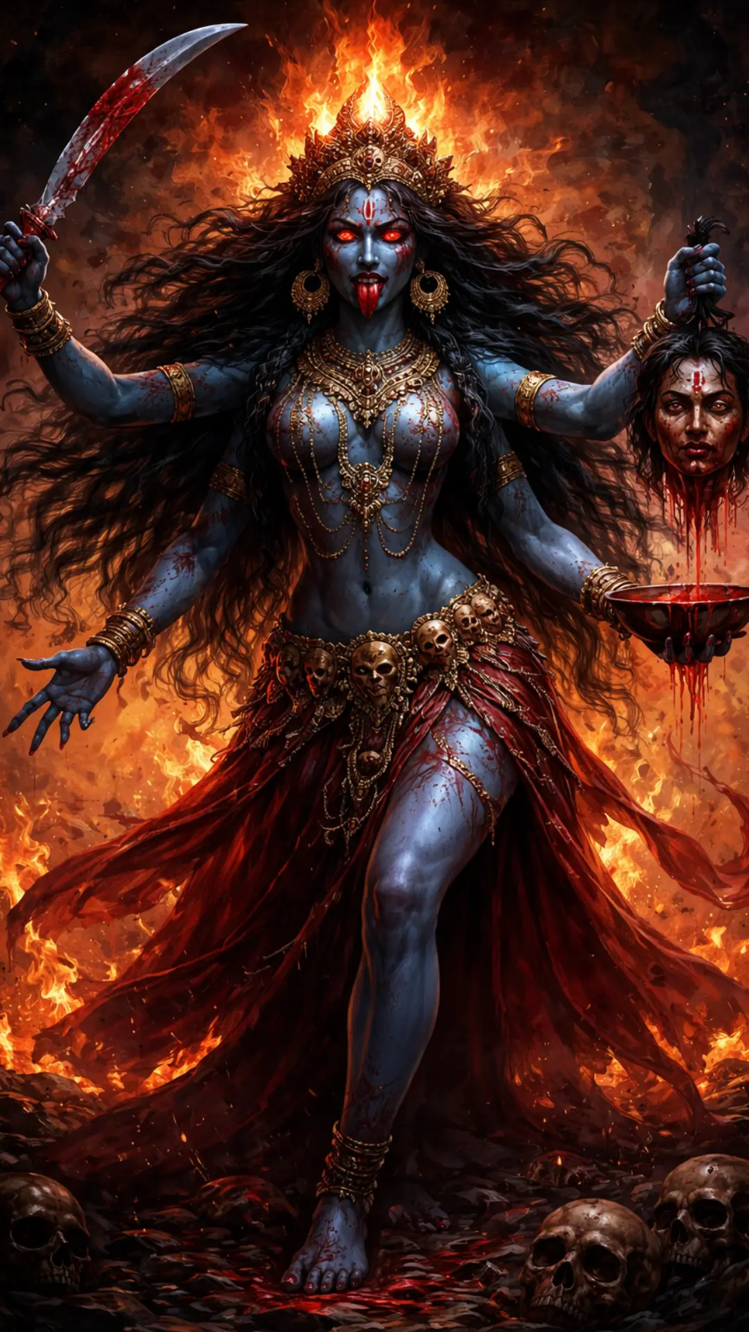 Despite her fearsome appearance, Maa Kalaratri shields followers from harmful forces and threats.